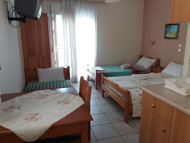Трокреветни студија на приземје – бр.3 со три единечни кревети и бр.1 и 2 со еден двоен + еден единечен кревет